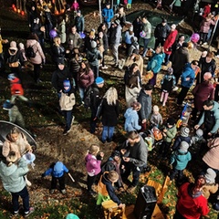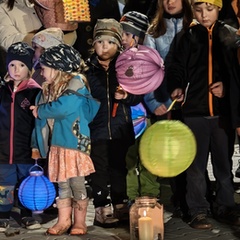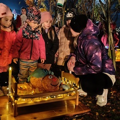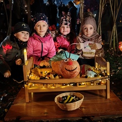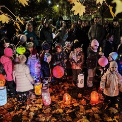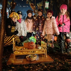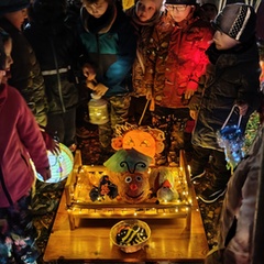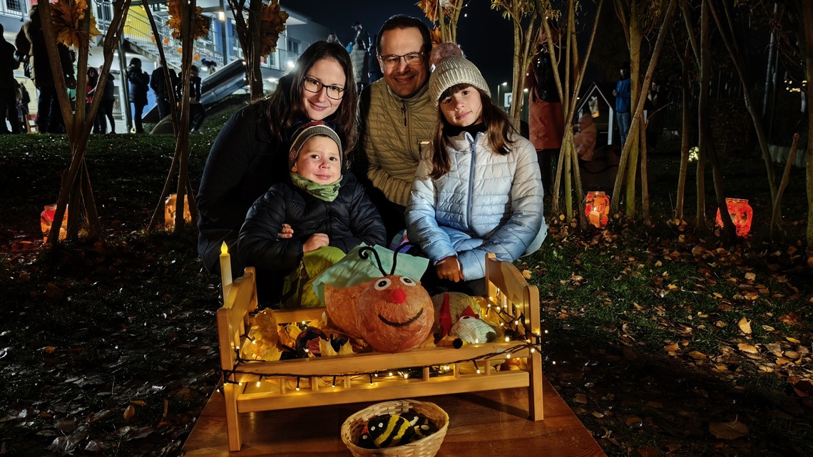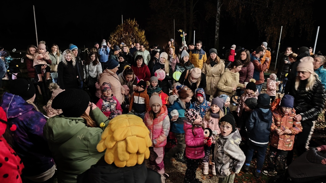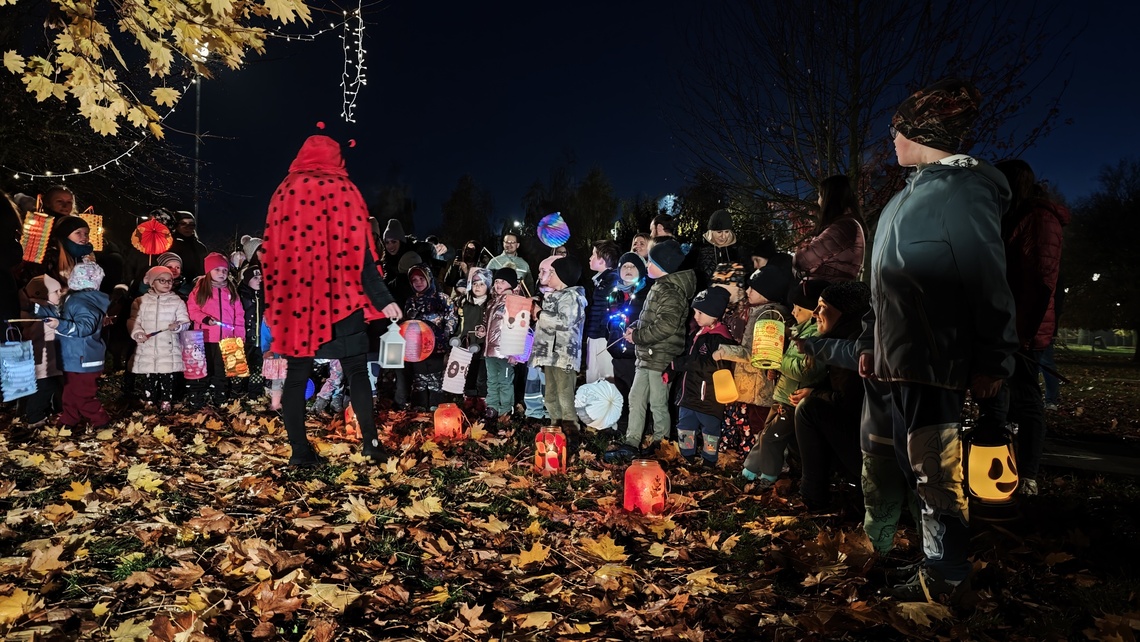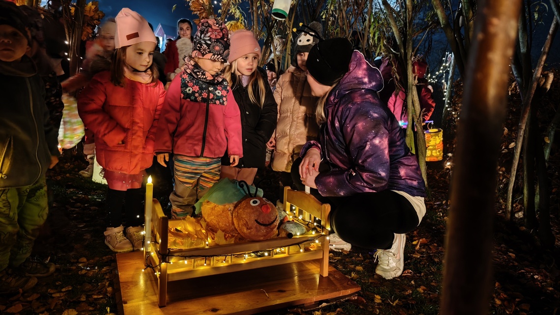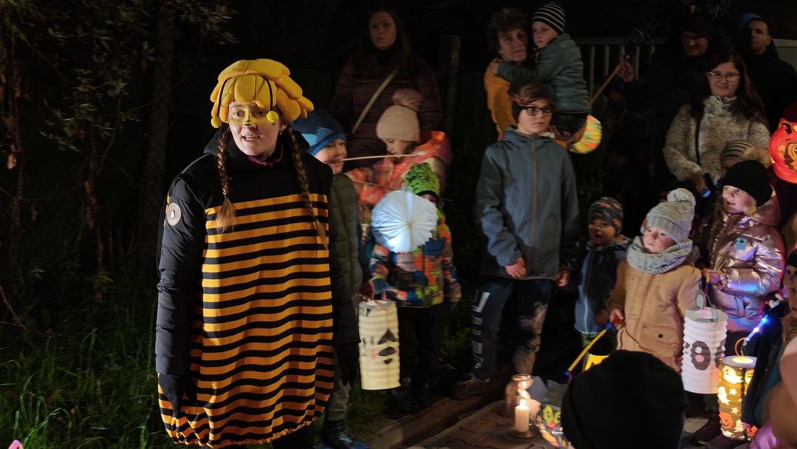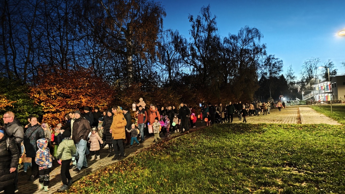 Po úvodním setkání na školní zahradě jsme se všichni vydali na lampionový průvod po okolí školy. Během cesty děti symbolicky potkávaly „unavené broučky“ připravující se k zimnímu spánku. Po návratu na zahradu na všechny čekalo veliké občertsvení.