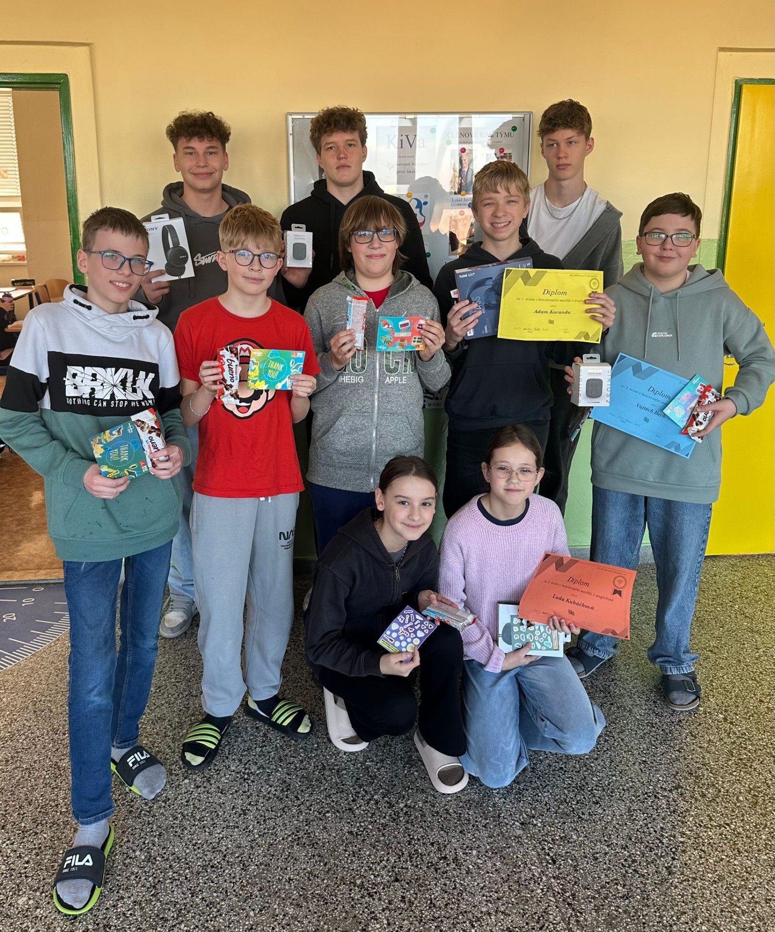 Vítězem 1. kategorie se stal Adam Koranda ze 7. B a ve 2. kategorii vyhrála Stella Zbořilová z 8. A. Tito šikovní angličtináři budou vysláni reprezentovat naši školu v okresním kole soutěže, které se bude konat v únoru v Domu dětí a mládeže Olomouc.
