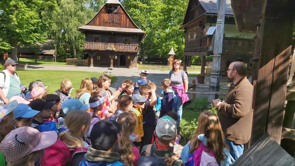 V úterý 27.5. se naši druháci vydali na výlet do Dřevěného městečka v Rožnově pod Radhoštěm. Děti se přenesly zpátky v čase a na vlastní oči viděly, jak lidé žili před mnoha lety. Procházely mezi starými roubenými chalupami, dozvěděly se, že právě v tomto skanzenu se natáčelo spoustu českých pohádek.